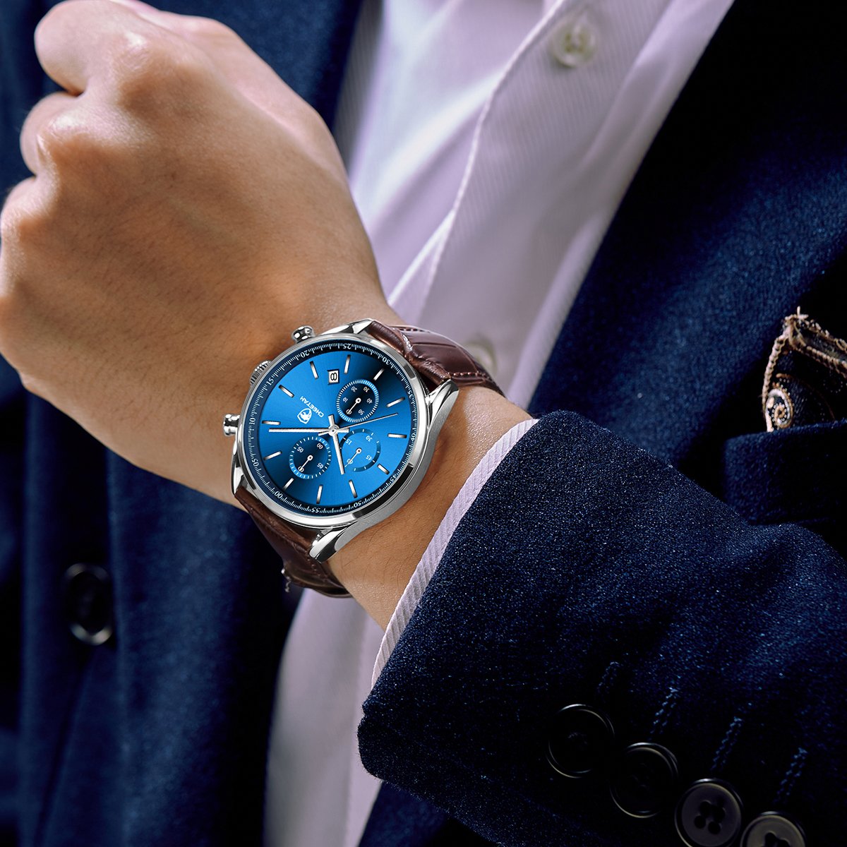 Please see our FAQ for more information on water-resistance ratings, quartz movement, chronograph functions, leather strap care, and other common questions.